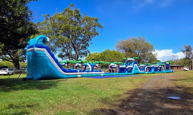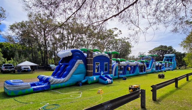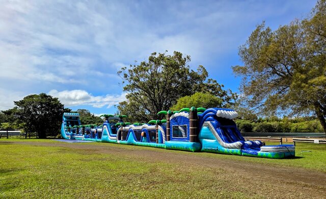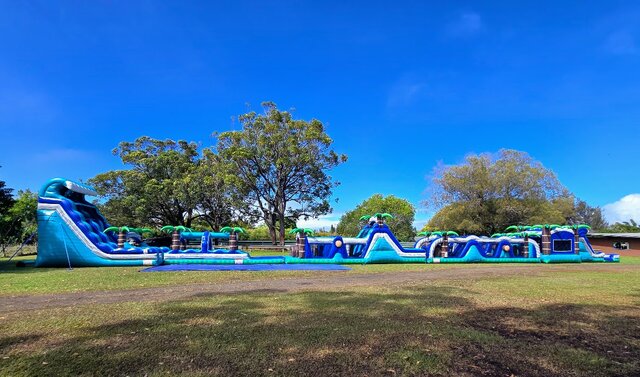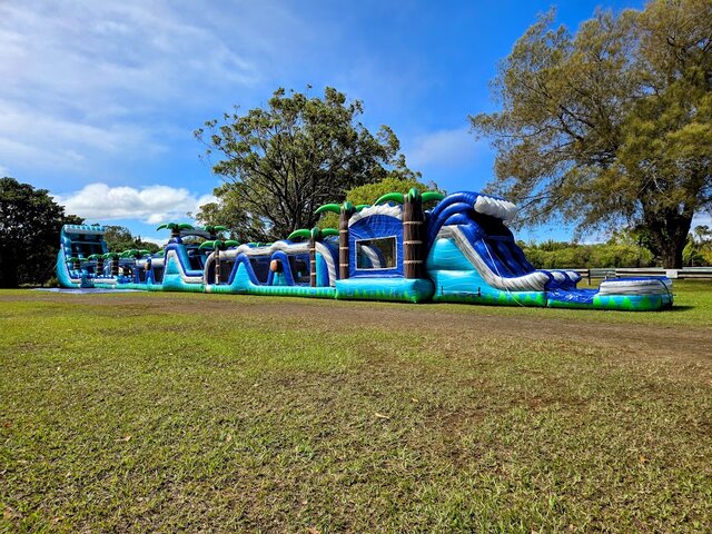 - Clean & sanitized 180’ Paradise Palms Dual Lane Obstacle