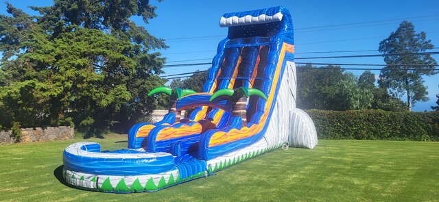 Make your party bigger, faster, and splashier with the 24' Tidal Wave (Dual Lane) from Shaka Slides Maui! This towering, two-lane water slide keeps lines moving and the ALOHA vibes flowing—race friends side-by-side to the splash pool, then run it back for more. 🌴🏁