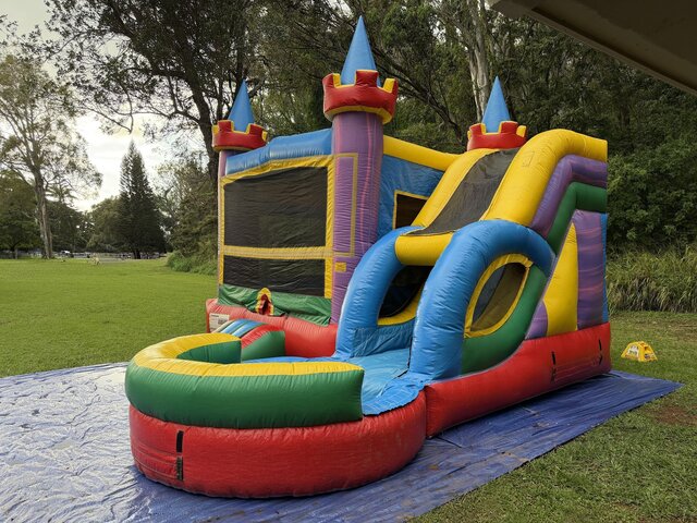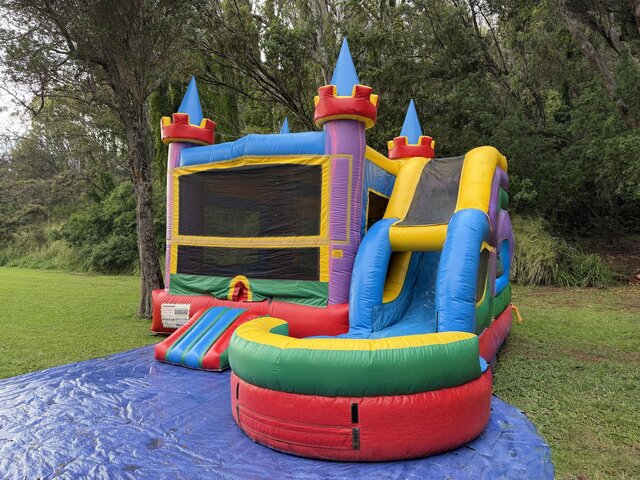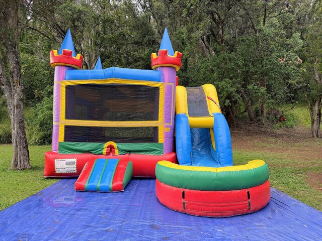 This slide combo has multiple ways to keep the keiki entertained all day long. From shooting hoops, to jumping, climbing, and sliding the options are practically endless.